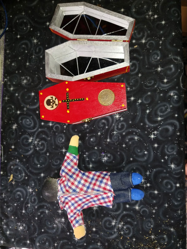 In brief, a Doll-baby is made to represent the intended target, hog-tied, and is imprisoned within the Mirror Box, usually upon a painful bed of thorns and hot peppers. The box is completely lined with mirrors, so the person must lie there for eternity, facing his or her evil actions, with every sin and crime reflected back upon them.
