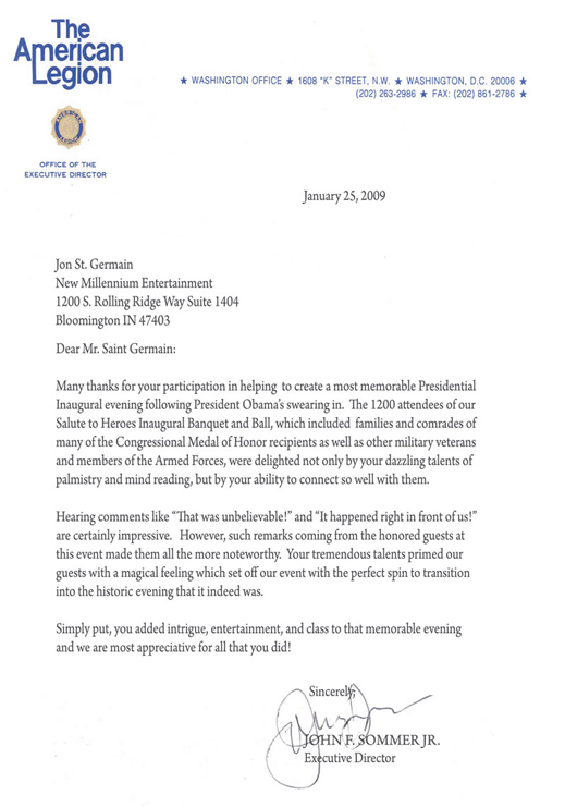REVEREND SAINT GERMAIN WAS HONORED TO BE THE OFFICIAL PALM READER FOR PRESIDENT BARACK OBAMA'S INAUGURATION